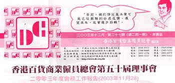會員通訊2003年12月第27期(總241期)日期:2004 年 1 月 5 日內容包括2003年度會務工作報告、財務報告、第五十一屆職員表, 各式各樣活動預告與報名詳情等! 按此閱讀!!! 返首頁 關 閉 打 印